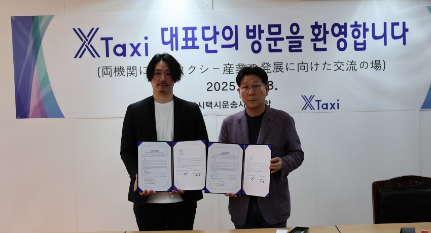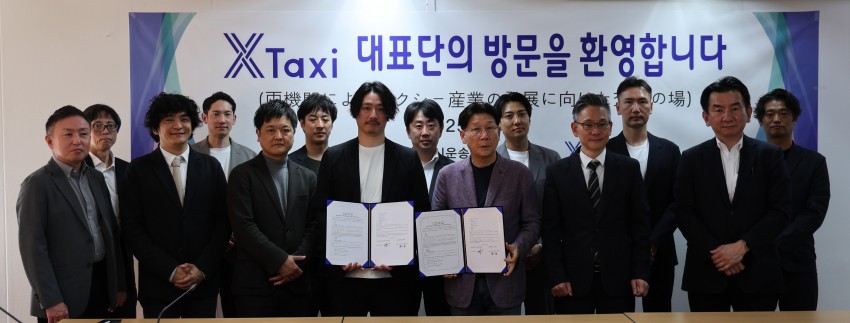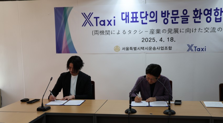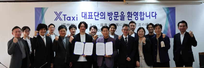 "우리 조합은 일본 크로스택시와 택시산업 발전을 위한 친선 협력 MOU를 체결하였습니다" 2025-04-24 1. 일시 : 2025.4.18.(금) 오후 14시 2. 장소 : 교통회관 6층 조합회의실 3. 참석자 : 크로스택시 대표 외 12명, 김동영 박사, 티머니 윤존이 팀장, 김태훈 부이사장, 문창식 대표이사, 심상홍 대표이사, 임상원 대표이사, 이우영 대표이사, 전승훈 대표이사, 최바다 대표이사